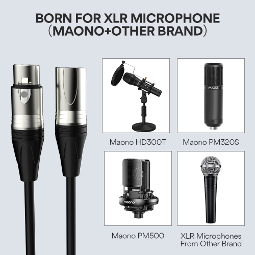 • Cáp tương thích hầu hết các thiết bị XLR-3pin (Microphone, Mixer, Sound Card, v.v.) của MAONO và các thương hiệu khác.