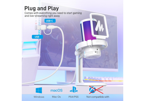 • Kết nối Plug and Play thông qua USB/USB-C không cần nguồn phantom, tương thích với Windows, Mac OS, PS4/PS5.
