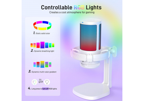 • Đèn RGB tinh chỉnh theo nhiều chế độ tĩnh/ độnga màu chuyển đổi động, tạo không khí gaming/ streaming vibes.