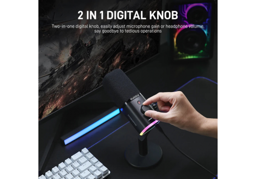 • Núm xoay đa năng 2-trong-1: chỉnh mic gain và headphone volume.