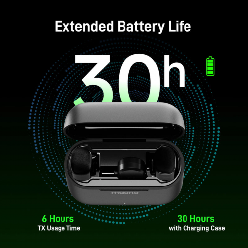 • Thiết kế siêu nhẹ mỗi mic chỉ 5.9g với thời lượng liên tục đến 6 giờ, hộp sạc di động đi kèm hỗ trợ sạc cho mic khoảng 30 giờ.