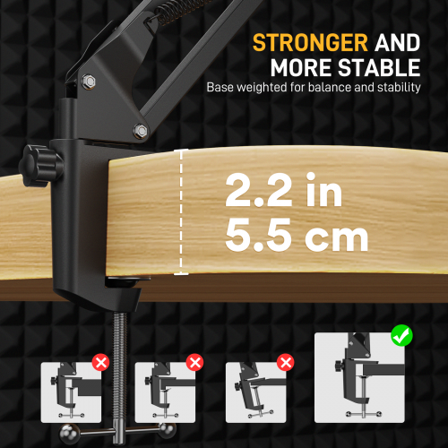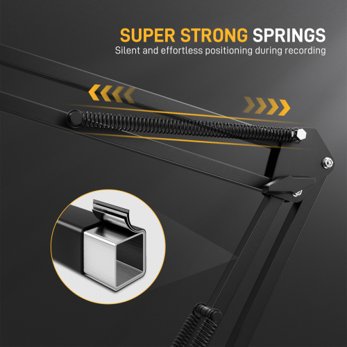 •  Tay đỡ micro boom arm chuyên nghiệp, thiết kế chịu tải trọng lên đến 1kg. Được làm từ thép cao cấp, kết hợp lò xo cực manh giúp giữ micro ổn định, hạn chế rung lắc ngay cả khi livestream, thu âm hay chơi game.