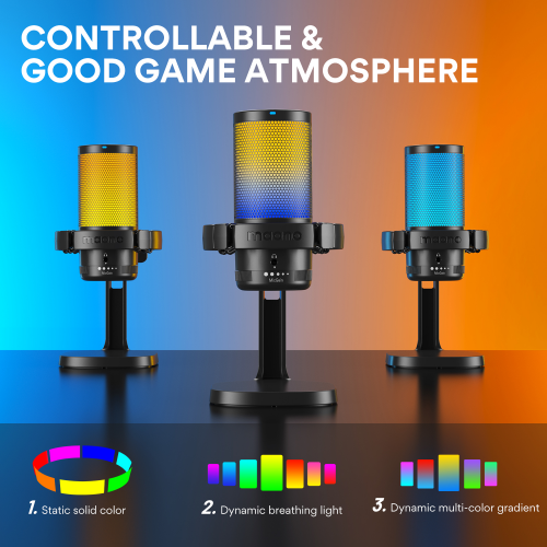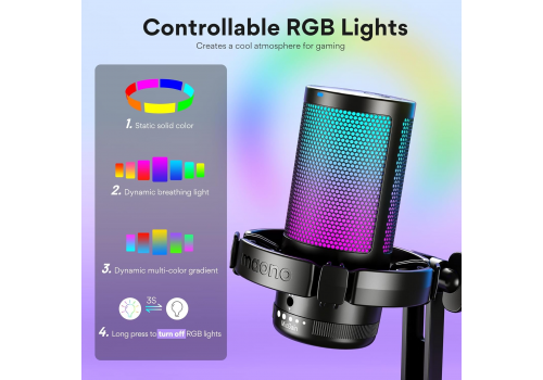 Maono DGM20 không chỉ mạnh về âm thanh mà còn nổi bật về dải đèn RGB sống động. Micro được trang bị hệ thống đèn RGB đa hiệu ứng, với nhiều chế độ tĩnh, động và chuyển màu liên tục. Điều này giúp setup livestream, gaming hay phòng thu tại nhà trở nên sinh động, chuyên nghiệp và cảm hứng hơn, đúng chuẩn phong cách streamer hiện đại.