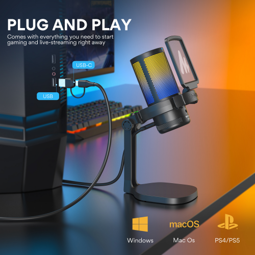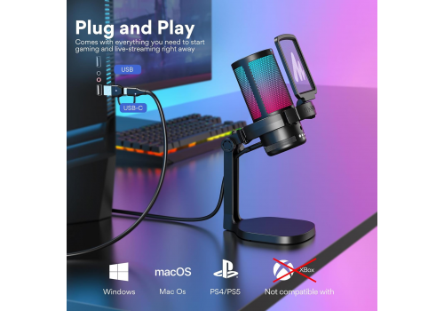 Maono DGM20 được thiết kế để bất kỳ ai cũng có thể sử dụng dễ dàng. Micro hỗ trợ kết nối trực tiếp qua USB/USB-C mà không cần nguồn phantom hay thiết bị thu âm bổ sung. DGM20 tương thích tốt với Windows, Mac OS, PS4 và PS5, giúp game thủ, streamer hay người làm nội dung có thể cắm vào và sử dụng ngay lập tức.