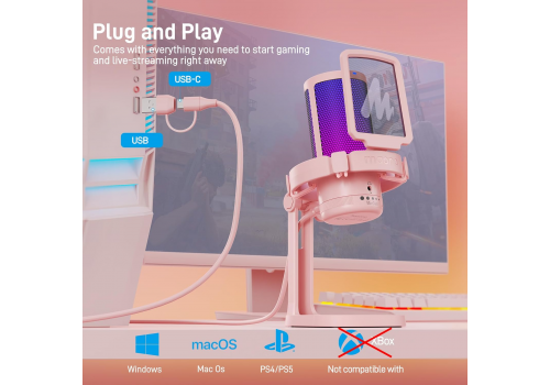 Maono DGM20 được thiết kế để bất kỳ ai cũng có thể sử dụng dễ dàng. Micro hỗ trợ kết nối trực tiếp qua USB/USB-C mà không cần nguồn phantom hay thiết bị thu âm bổ sung. DGM20 tương thích tốt với Windows, Mac OS, PS4 và PS5, giúp game thủ, streamer hay người làm nội dung có thể cắm vào và sử dụng ngay lập tức.