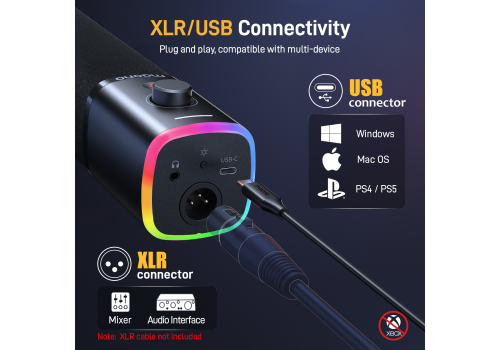 Maono PD100X hỗ trợ kết nối USB-C plug-and-play giúp người dùng có thể sử dụng nhanh chóng với PC, Mac, laptop hoặc PS4/PS5 mà không cần thiết bị phụ trợ.
