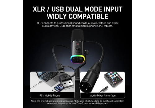Với những ai muốn âm thanh chuyên nghiệp hơn, micro còn hỗ trợ kết nối XLR để dùng với audio interface hoặc mixer, phù hợp cả môi trường phòng thu bán chuyên và chuyên nghiệp. Nhờ đó, PD100X phù hợp cho nhiều cấp độ người dùng, từ người mới livestream đến streamer lâu năm.