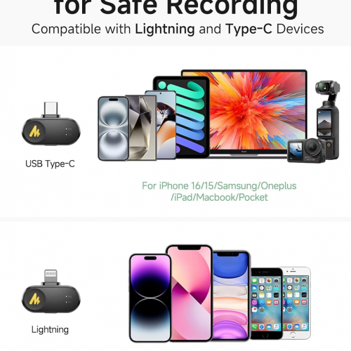 Micro thu âm không dây MAONO WM622 PBC2 (Type-C và Lightning)
